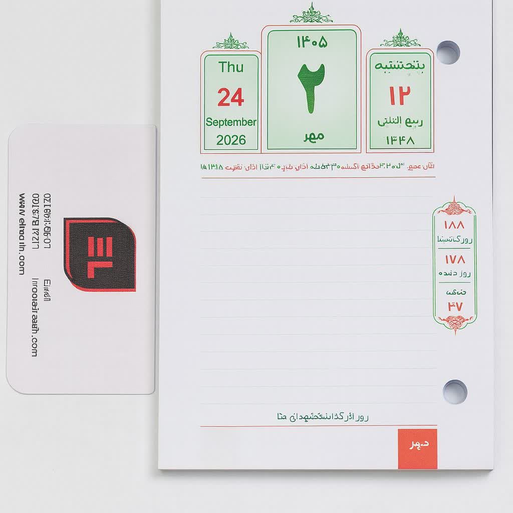 با تقویم رومیزی 1405 مهرگان، زمان را در دستان خود بگیرید! این تقویم با طراحی منحصربهفرد و کیفیت عالی، زیبایی و نظم را به محیط کار و خانهتان هدیه میدهد. هر روز را با انرژی و انگیزه آغاز کنید و لحظات مهم زندگیتان را با این تقویم بهیادماندنی ثبت کنید. همین حالا خرید کنید!