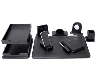 ست اداری رومیزی چوبی کد ۱۸۵، ترکیبی از طراحی شیک و کارایی بینظیر است که فضای کاری شما را متحول میکند. ساخته شده از چوب با کیفیت، این ست با ظرافت و دوام خود، نظم و زیبایی را به دفتر کار شما هدیه میدهد. همین حالا سفارش دهید و با ایجاد محیطی حرفهای و دلپذیر، بهرهوری خود را افزایش دهید!