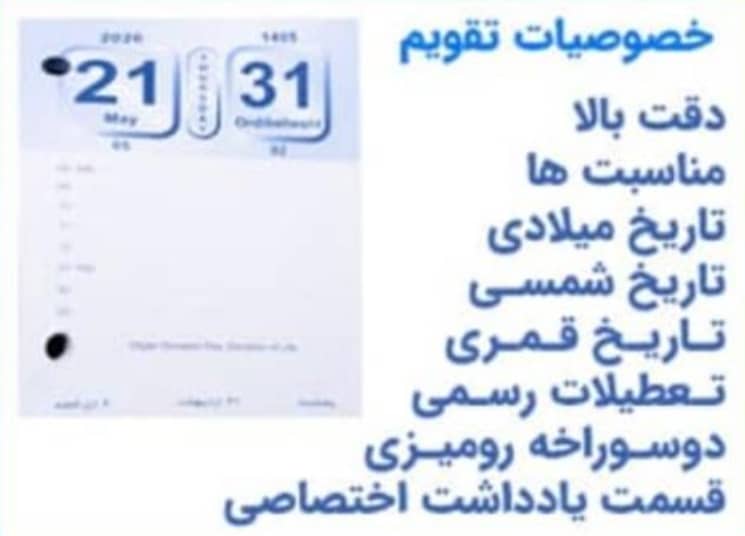 آیا آمادهاید تا هر روز سال 2026 را با نظم و انگیزه آغاز کنید؟ تقویم رومیزی میلادی 2026 با طراحی شیک و منحصر به فرد، بهترین همراه شما برای برنامهریزی و یادداشتهای روزانه است. این تقویم با کیفیت عالی و رنگهای جذاب، جلوهای خاص به میز کار شما میبخشد. همین حالا سفارش دهید و برنامهریزی خود را به سطح جدیدی برسانید!